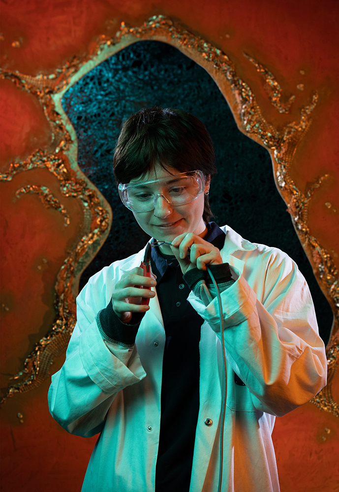 Hannah Baer: Ich bin Hannah, 4. Semester, relativ neu im Labor. Mich findet man meistens in der Technik-Abteilung, wo ich allerlei seltsame Space-Objekte untersuche. Seitdem diese seltsame Kapsel angekommen ist, habe ich keine Sekunde mehr geschlafen…
