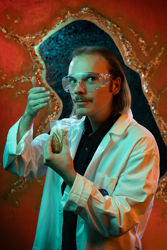 Domenik Erhorn: Warum ich seit 3 Tagen nicht geschlafen habe? Ich entwickle Technologie, mithilfe der wir mit den Extraterrestrischen kommunizieren können. Mein Arbeitsplatz ist voll mit Kristallproben.